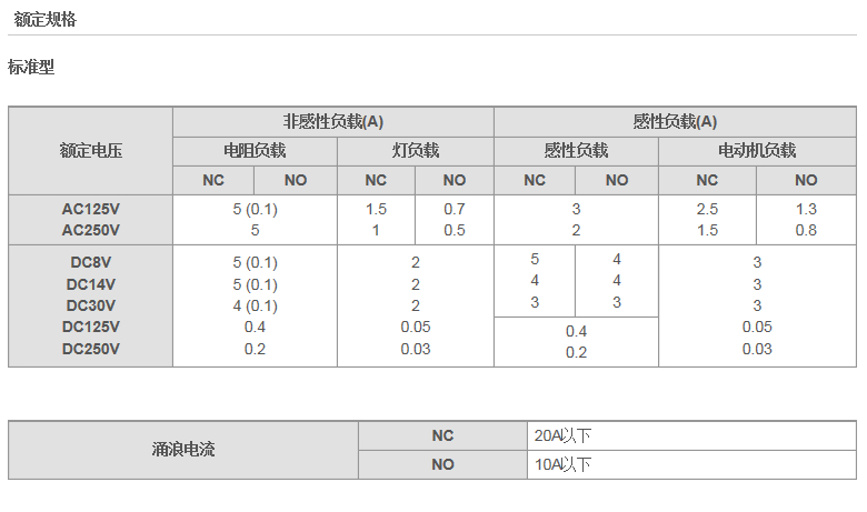 2. 所謂感性負載,是指功率因數0.4以上 (AC)、時間常數7ms以下 (DC) 時的負載。
